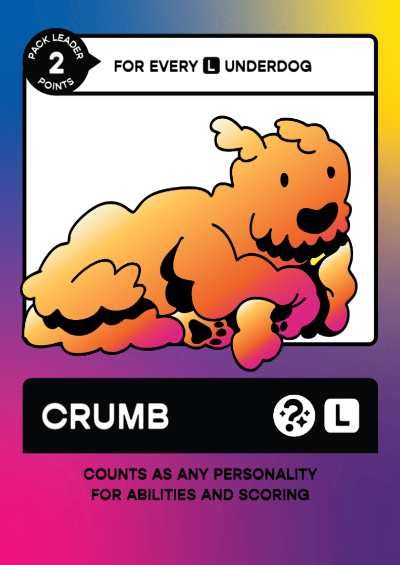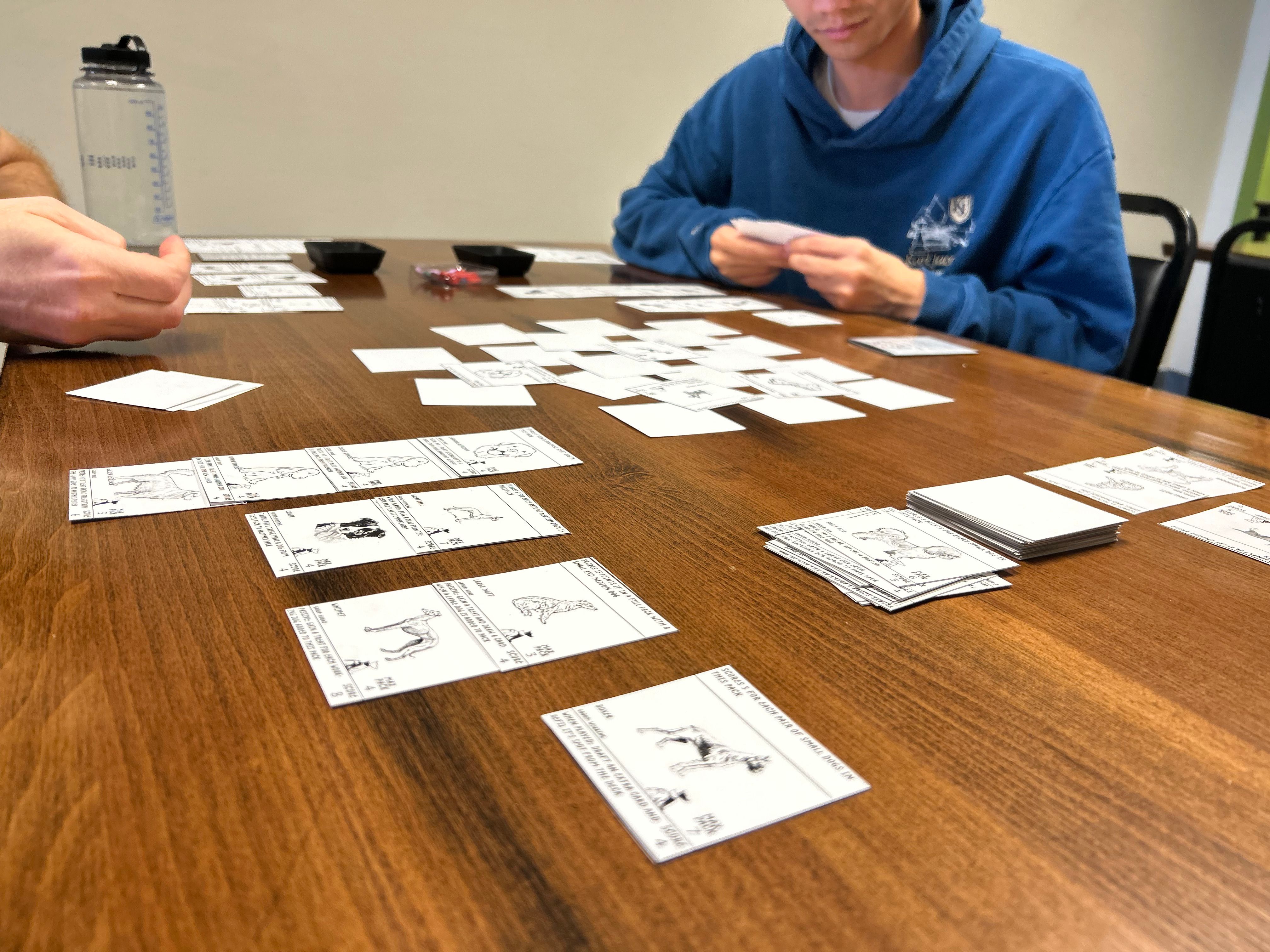 Perhaps the best example of challenging the game's design comes in the form of dogs with a “Wild” personality. These are cards that can be used in lots of ways to make tricks stronger or score more points at the end of the game. The idea was first brought up by Rescue's graphic designer, Jessee Fish, while playtesting with family.